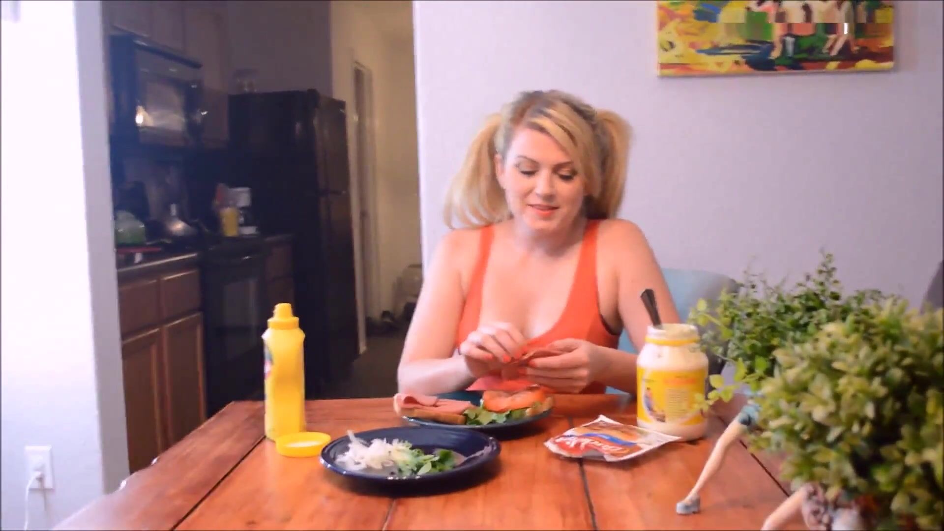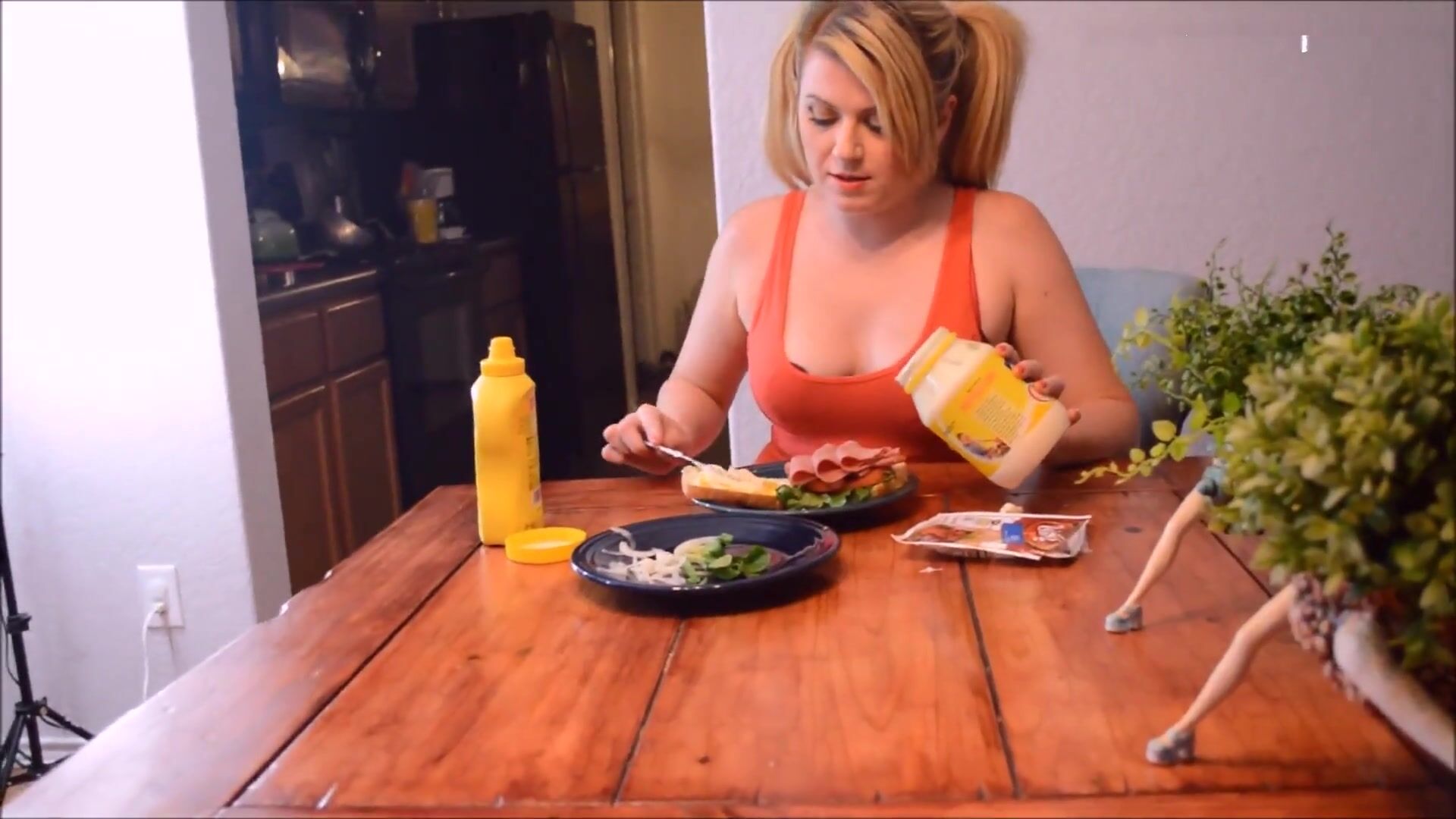 Eres mi padrastro pervertido que se masturba debajo de la mesa mientras preparo un sándwich. Cuando me alejo por un momento, derramas una gran y espesa y cremosa carga sobre mi mayonesa. Luego puedes mirar con satisfacción mientras me la como entera. Tu polla ya está dura como una piedra otra vez cuando no puedes creer lo bueno que está el sándwich.