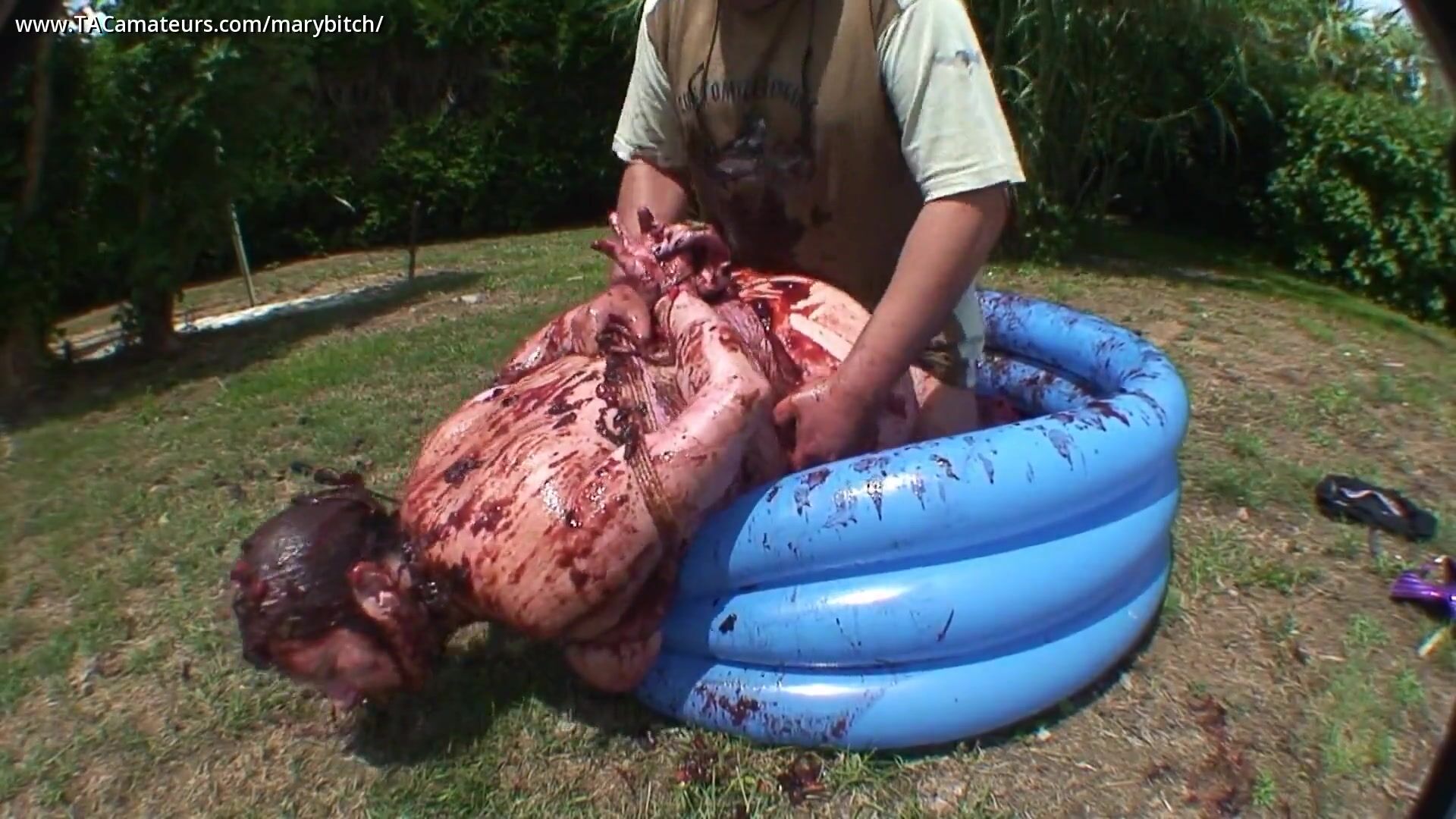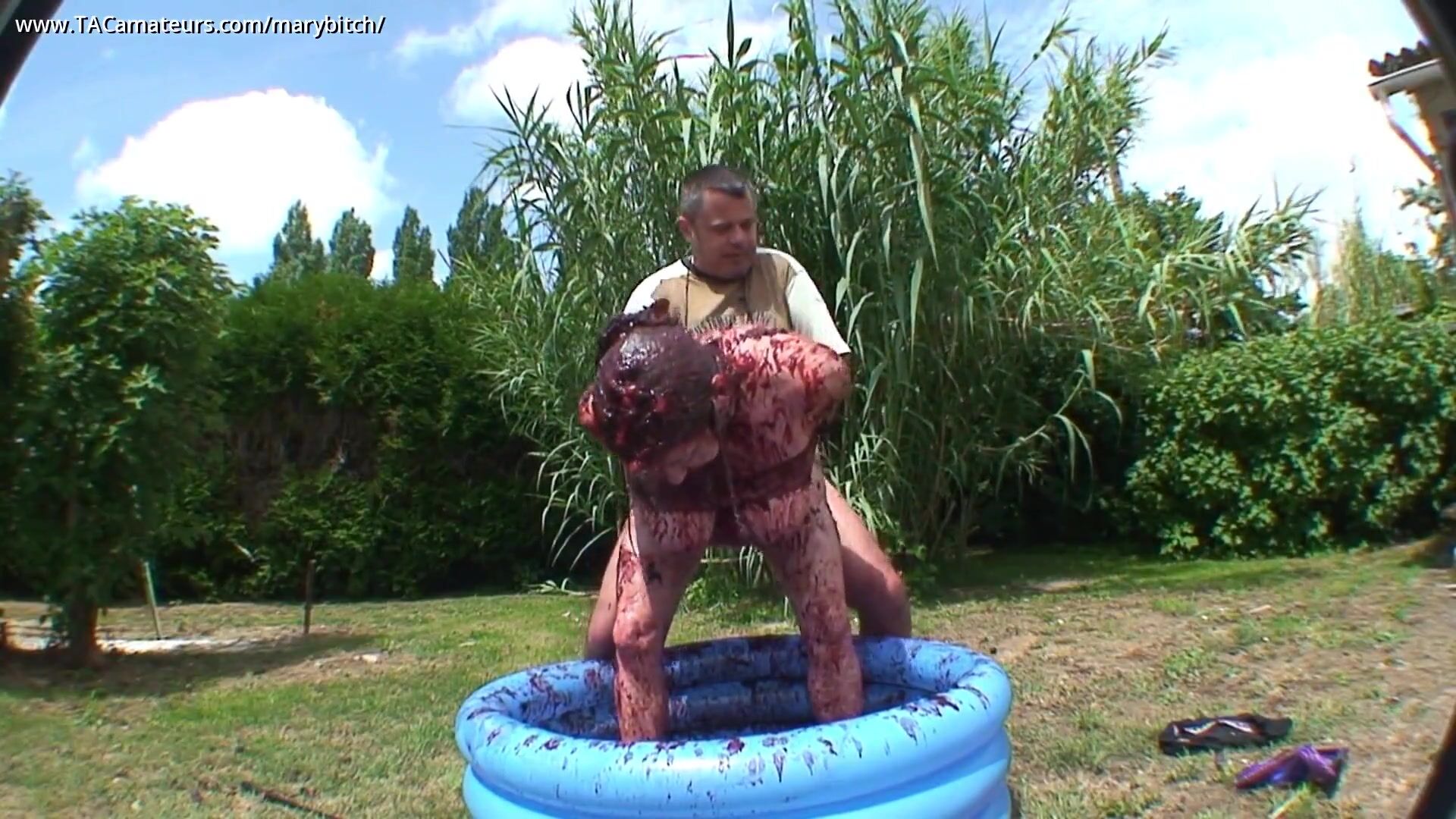 Mi amo sigue ensuciándome, me echa braults de mermelada de ciruelas en la cabeza, luego va conmigo a la piscina inflable para follarme y hacerme chupar su polla sucia de mermelada... es súper buena una polla con mermelada...