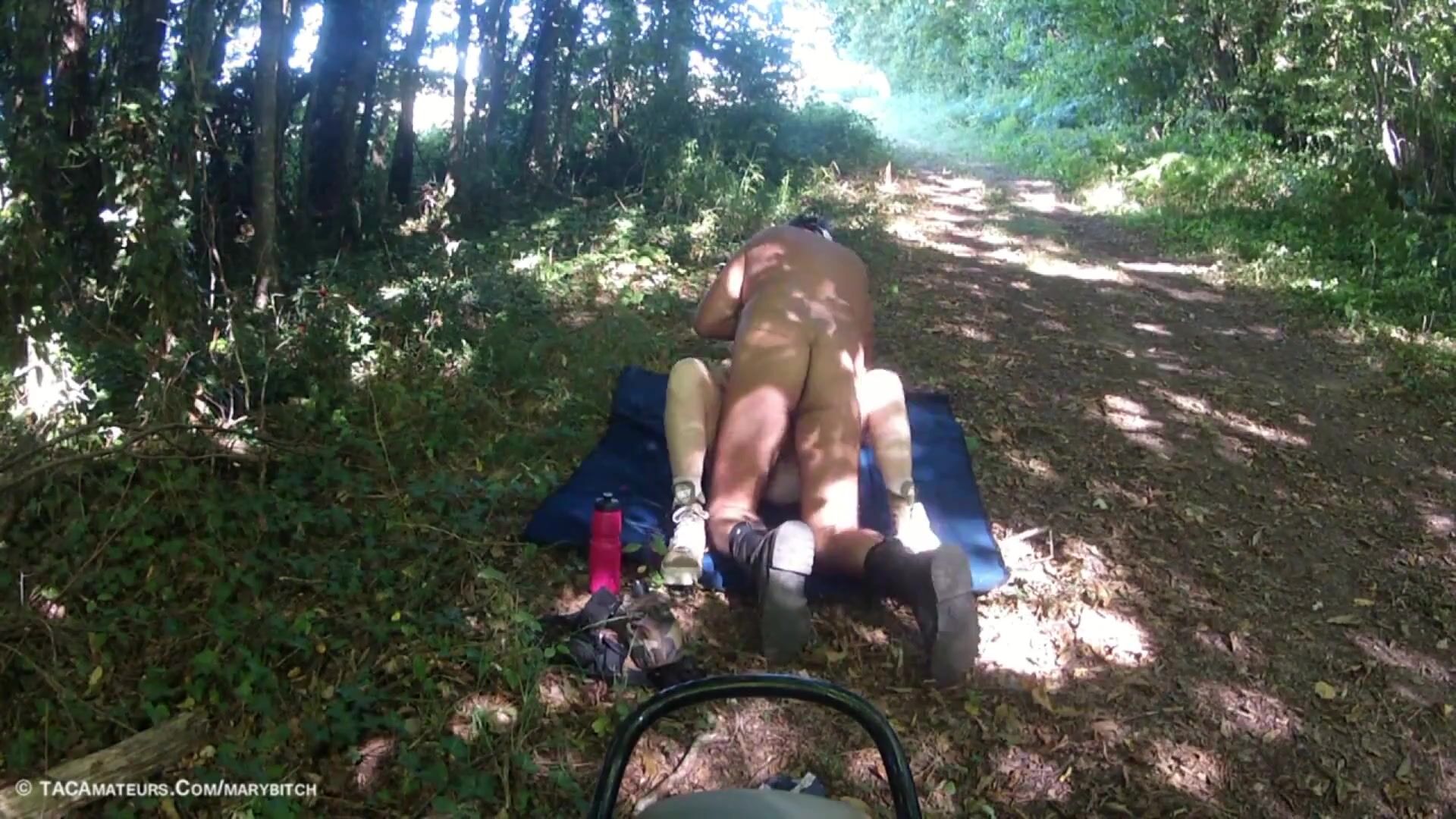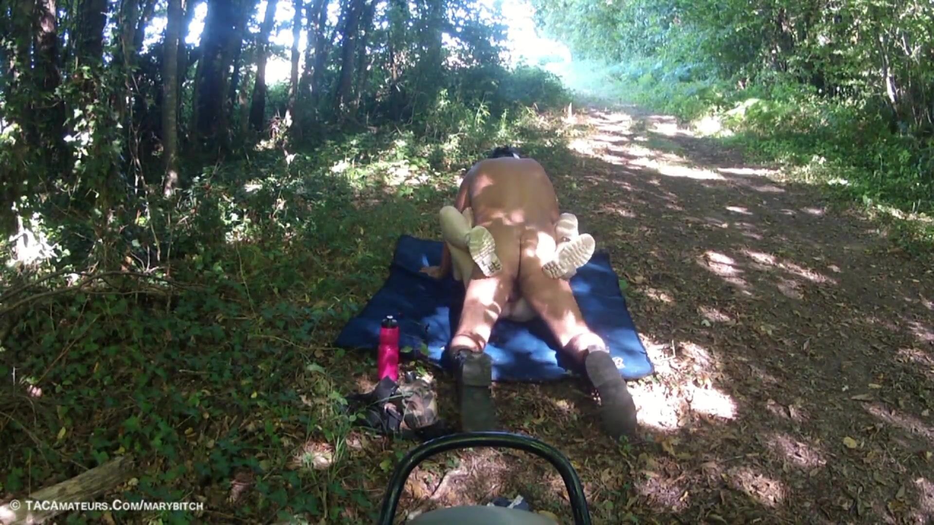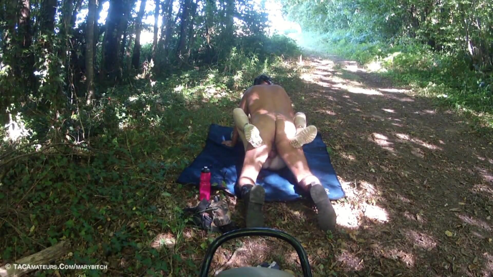 Me hizo el voyeur y miro cuando me hace follar en el bosque un tio. Besos, lamidas de coño, mamada... el tio se corre en mi coño peludo y me levanto para vaciar el semen de mi coño en el suelo.
