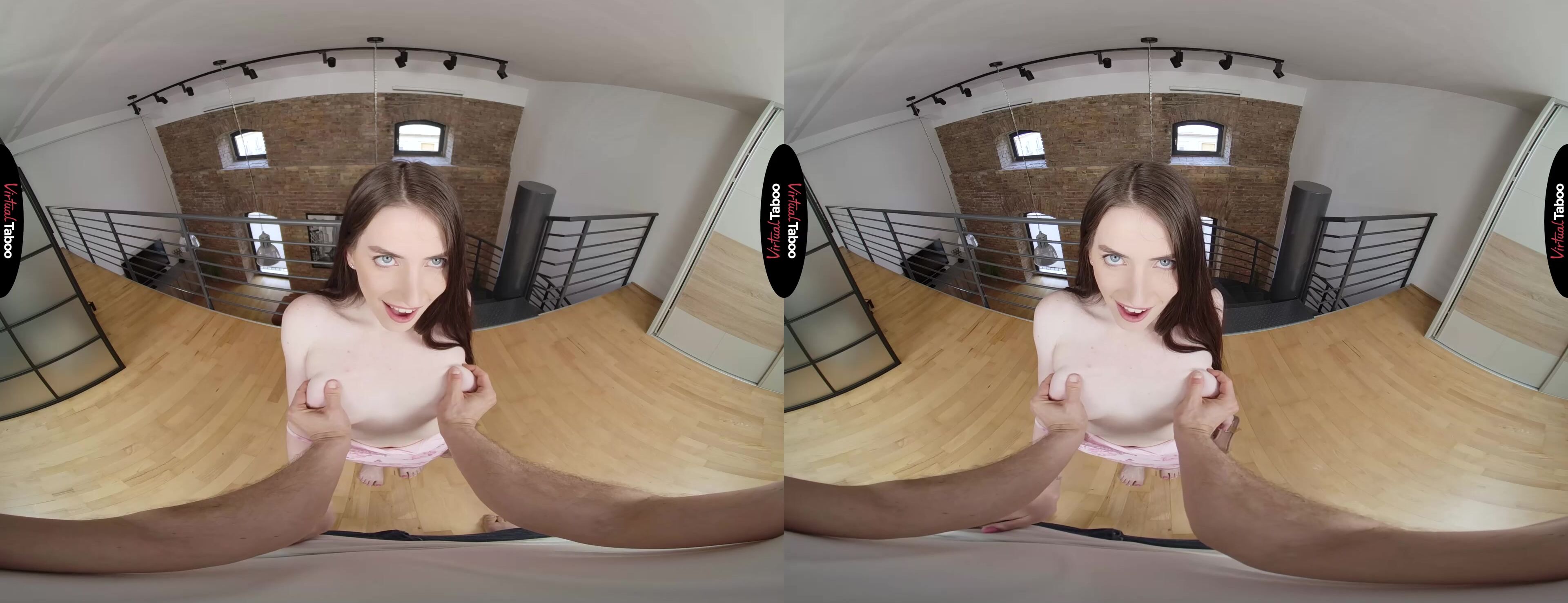 Aria Carson ha estado disfrutando de su tiempo en la universidad. Ha hecho nuevos amigos y tiene una vida sexual muy activa gracias a que su padre siempre ha sido un poco despistado. Todo eso ha cambiado ahora que se ha vuelto a casar y ha mudado a su nueva esposa y a su hijo a la casa. Las cosas son mucho más estrictas y Aria tiene que tener cuidado al entrar a escondidas después de llegar tarde a casa de una fiesta con su último novio. Su hermanastro entrometido está despierto y esperando para atraparla en el acto. Aria intenta actuar con calma pidiéndote que guardes su secreto, pero puede decir por la mirada en tus ojos que va a hacer falta algo más que buena voluntad para que te quedes callado. No tiene ningún problema en hacer lo que quieras si eso es lo que se necesita para no meterse en problemas. Inclinándose para ti, Aria muestra su culo y se sorprende un poco cuando sacas la polla más grande que ha visto en mucho tiempo. ¿Quién iba a decir que el pervertido astuto estaba escondiendo una polla tan grande en su habitación viendo porno en realidad virtual? Tomándola en su boca, te hace gemir y luego jurar que no les dirás a sus padres lo tarde que llegó. Por muy buena que sea con la boca, quieres más y la giras para follarle el coño por detrás. Tus embestidas profundas la hacen correrse y gritar tan fuerte que le preocupa que sus padres la pillen haciendo algo más que romper el toque de queda. Está tan ocupada intentando correrse en silencio que no se da cuenta de que le disparas la carga directamente en el coño. Eso no era parte del plan, pero es mejor que meterse en problemas. Le dices que puede quedarse fuera hasta tan tarde como quiera y que guardarás sus secretos mientras te folle después. Ella ni siquiera está segura de tener que quedarse fuera con una polla tan buena esperándola en casa.