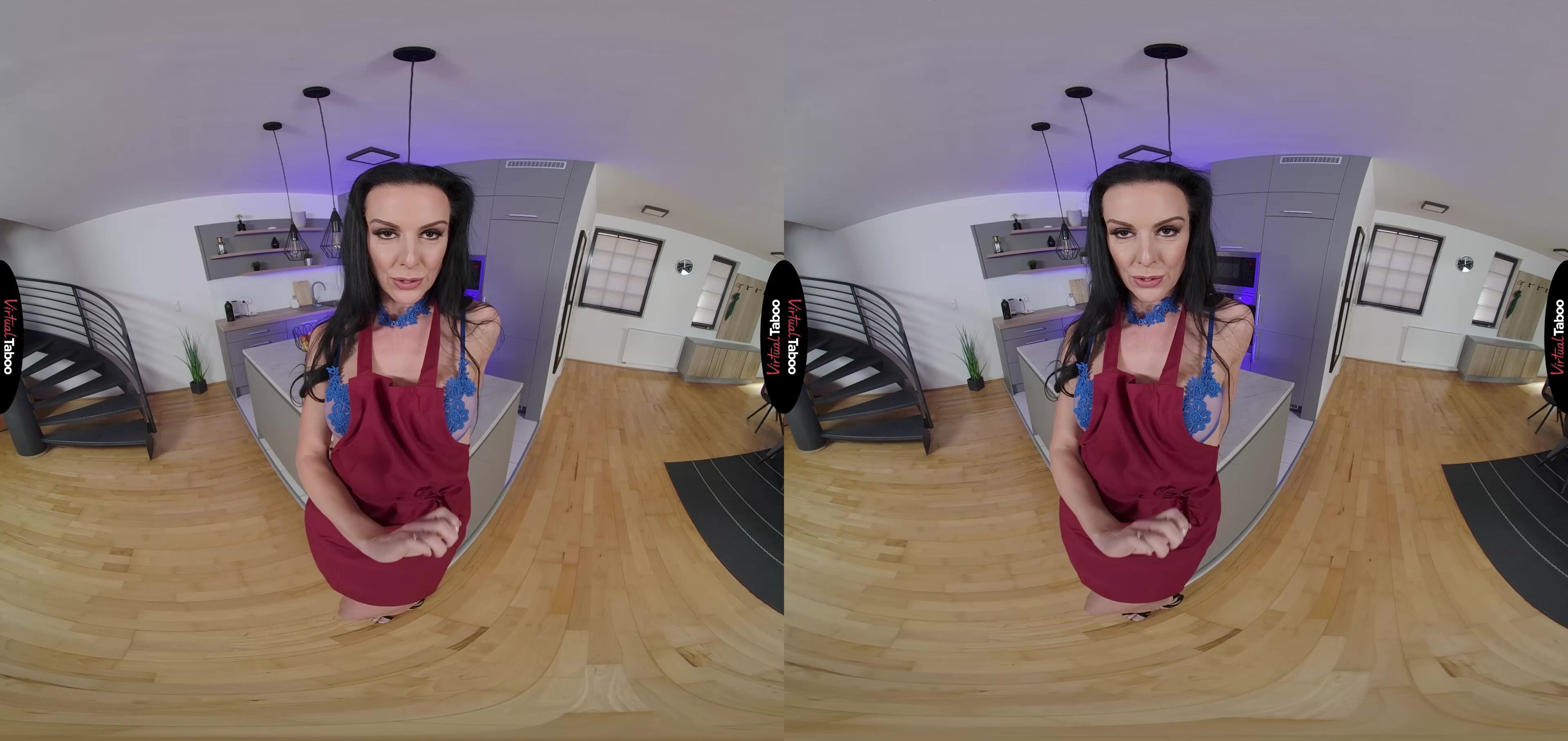 Cansada de que su marido la ignore, la MILF cachonda Texas Patti ha decidido que es hora de que se ponga un poco a actuar. Como no quería ni necesitaba salir a buscar problemas, le preparó a su hijastro su comida favorita y le pidió que se uniera a ella. Apartarlo de sus auriculares y de su porno de realidad virtual no fue fácil, pero cuando vio a su madrastra con tacones y un delantal nuevo, supo que había tomado la decisión correcta. Ella ve la mirada de lujuria en tus ojos cuando ves que debajo del delantal lleva sujetador y bragas. Este es exactamente el aspecto que esperaba. Ahora que tiene toda tu atención, se da la vuelta y se inclina para mostrar su trasero. Patti explica que se suponía que el atuendo era para tu padre, pero como está demasiado ocupado, quiere ver cuánto disfrutarías dándole la atención que ella anhela. En este episodio de porno de realidad virtual, te dice que te bajes los pantalones y le muestres tu polla. Dudas y ella repite la orden con más fuerza. Sacas tu polla y la sostienes en tu mano. Es más grande que el de tu padre y palpita mientras miras su cuerpo. Ella puede ver cuánto la deseas, pero quiere verte bombeando por ella. Accedes y le pides que te muestre su trasero mientras tiras de tu polla gorda. Estás a punto de correrte y ella se frota el clítoris con los dedos para alcanzar el orgasmo, llega al clímax contigo y se pregunta si podrán esperar hasta llegar al dormitorio para llevar las cosas al siguiente nivel.
