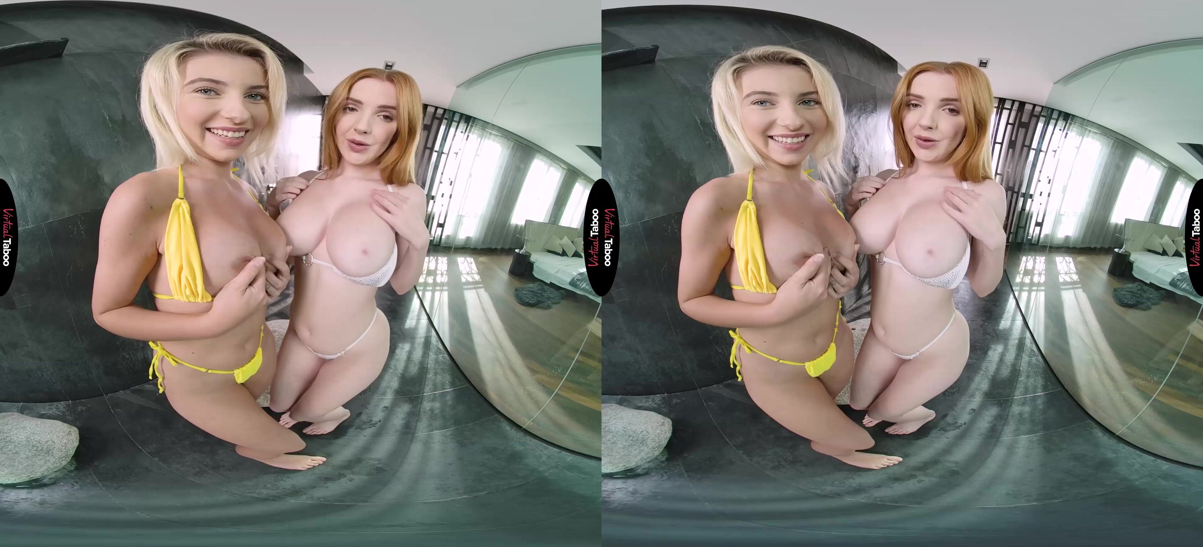 Has estado casado con la madre de Scarlett durante varios años. No todos han sido felices. Su madre siempre viaja a algún lado por negocios, por lo que no ha sido la mejor madre ni la esposa más atenta. Sin embargo, Scarlett siempre ha apreciado lo bien que cuidas de ellas. Cuando empezó la universidad, sabía que era tu trabajo duro lo que la había ayudado a pagar las cosas. También ha notado la forma en que has estado mirando a su linda amiga Lilly Bella cuando están en la casa. Queriendo agradecerte todo tu trabajo duro, a Scarlett se le ocurre una gran idea y se emociona cuando ella acepta. En este episodio de porno en realidad virtual, llegas a casa de la oficina y, como siempre, su madre no está por ningún lado, pero escuchas la ducha abierta. Al revisarla, encuentras a Scarlett y Lilly en sus diminutos bikinis besándose bajo el cálido rocío del agua. Está bien, no tienes que ir. Esto es para ti. Como agradecimiento por todo lo que haces. Sé que siempre te ha gustado Lilly y veo que nos estás mirando. Así que relájate y disfruta del espectáculo tabú de realidad virtual. Scarlett desnuda a su bonita amiga rubia y luego te sonríe cuando Lilly la ayuda a quitarse la parte superior para mostrar las grandes tetas que siempre has tratado de no notar. Volviendo a ponerse bajo el chorro de agua, las chicas abren las piernas y te muestran sus coños apretados y húmedos. ¿No quieres follar con una? ¿O tal vez con las dos? Saca tu polla, tal vez puedas. ¿Quién será la primera? ¿La rubia apretada o tu hijastra pelirroja de grandes tetas? ¿Por qué no las dos? ¿Puedes aguantar mientras se corren sobre sus dedos?