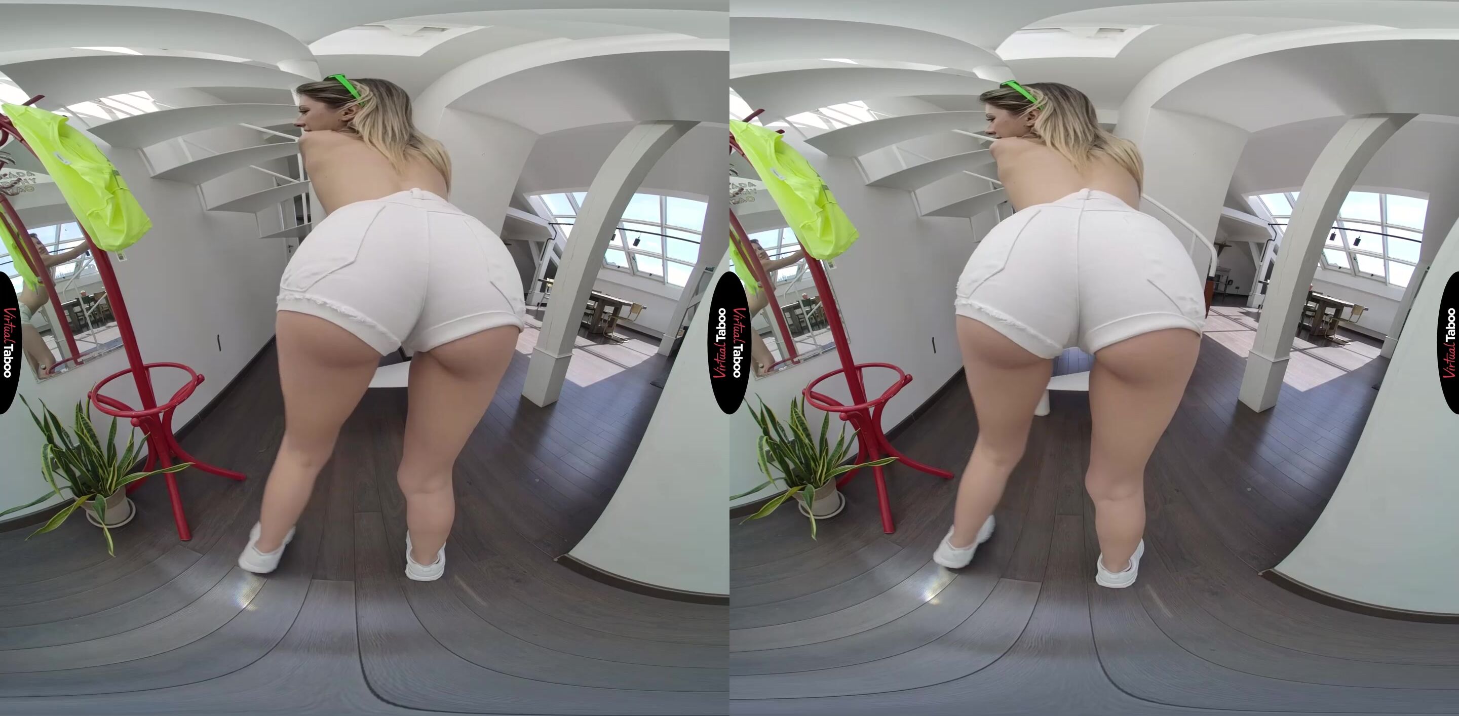Las cosas han sido demasiado aburridas para la ardiente estudiante universitaria Rebecca Volpetti desde el encierro. No puede salir, no puede ver a sus amigos, no puede deslizar el dedo hacia la derecha y conseguir la polla que ama. La está volviendo loca. La combinación de aburrimiento y frustración sexual hace que su mente se acelere y su cuerpo anhele liberarse. Una mañana, después de que su madre se haya ido a trabajar, decide divertirse un poco seduciendo a su padrastro. Él trabaja desde casa, por lo que los dos ya pasan todo el día solos juntos. ¿Por qué no llevar las cosas un poco más allá y conseguirle la atención y el sexo que anhela? En estos videos porno de realidad virtual, se puso su par de pantalones cortos más ajustados y una camiseta que dejaba su vientre al descubierto y se quedó parada en la puerta de tu oficina hasta que la notaste. Una vez que tuvo tu atención, la hermosa chica rubia se levantó la camisa y te vio mirar sus alegres tetas jóvenes. Verte mirarla ha excitado a Rebecca y simplemente no puede mantener sus manos fuera de sus pantalones cortos. Ella se los quita de encima justo cuando tú sacas tu polla y comienzas a acariciarla. Es grande y dura como en sus fantasías. La acaricias, mirando su coño y mojándola cada vez más. Tu mano fuerte bombea hacia arriba y hacia abajo sobre tu grueso eje mientras ella abre las piernas y desliza sus delgados y jóvenes dedos en su tierno coño. Ella puede ver tu cuerpo tensarse, tu deseo crecer. Cerrando los ojos, siente que está llegando al límite, llegando al clímax sobre sus dedos. Los abre justo a tiempo para verte correrte por todo tu cuerpo. Rebecca, sonriendo, se dirige al piso de arriba. Mañana lo llevará aún más lejos.
