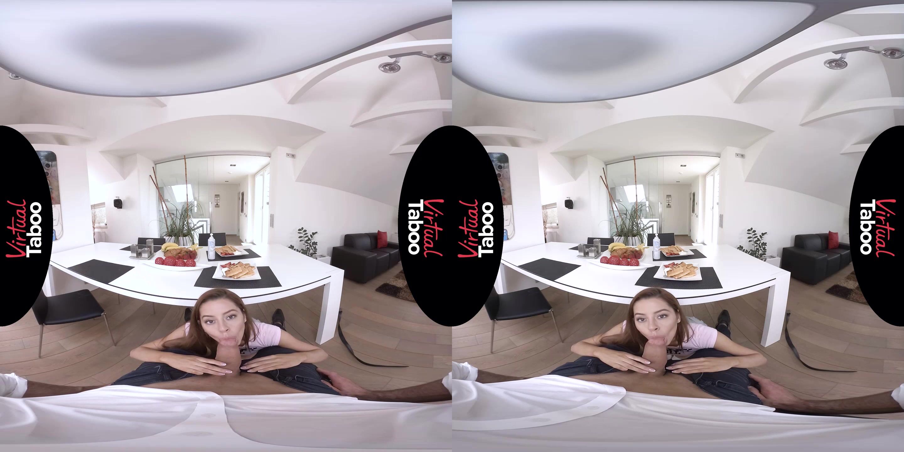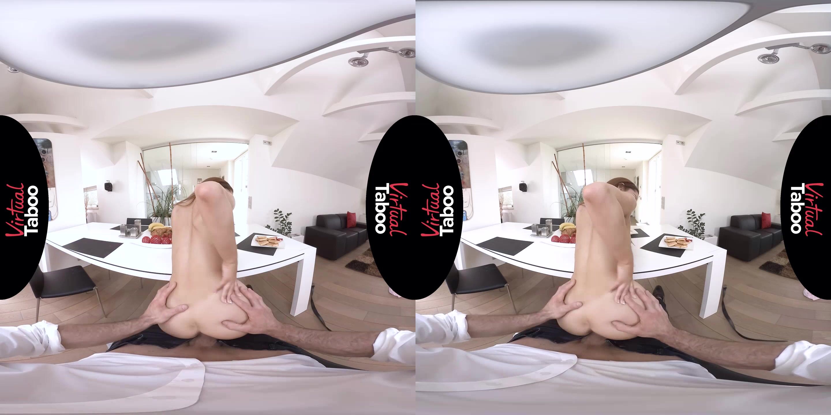 Es el primer día de verano y con las clases en la universidad en receso, Vanna Bardot tiene un plan. Está loca por el nuevo y sexy esposo de su mamá desde la boda. Sin clases de las que preocuparse y sin trabajo al que ir porque su nuevo padrastro es rico, Vanna espera a que su mamá salga de compras y luego hace su movimiento. Se pone una linda blusa rosa y sus shorts de jean más pequeños y va a la cocina a prepararle el desayuno. Para cuando papá baja las escaleras, el olor a comida llena el aire y no puede evitar notar lo sexy que está su hija mientras le sirve. Bromeando con él con un vistazo de sus mejillas y una gran sonrisa, pone la comida en la mesa. Sabiendo que tiene la atención de papá, la precoz morena deja muy claras sus intenciones. Confiesa que lo ha notado en la casa, lo amable que es, lo sexy, cómo se ve su cuerpo cuando sale de la ducha. Ella también le cuenta cómo ha escuchado los intensos gemidos que vienen del dormitorio de su madre y cómo la vuelven loca de deseo y celos. Vanna pone crema batida en los waffles de papá y prueba un poco seductoramente para sí misma, saboreando y tragando la crema como si fuera su semen. Al notar el bulto en los pantalones de papá, Vanna aprovecha y se mete debajo de la mesa para probar su polla. Es incluso más grande de lo que imaginaba y mucho más grande que la de su novio. Llena su boca mientras la empuja ansiosamente hasta el fondo de su garganta en un esfuerzo por complacer a papá. Se quita la ropa y se sienta sobre su bofetada lentamente, sintiendo cada centímetro grueso. Ahora entiende por qué su madre gime tan fuerte. Él levanta a su hija y la pone sobre la mesa, abriéndole las piernas para asegurarse de que entra completamente dentro de ella. Se siente enorme dentro de su hija, pero a Vanna le encanta la gran polla de papá y se corre por todas partes. Queriendo probar el semen por primera vez, chupa su carga de su polla y la saborea. Vanna disfruta del sabor y juega con su carga, sentándose, frotándola en su piel y lamiéndola hasta que finalmente se la traga toda. Adora la polla de papá y su semen y quiere que la alimente todos los días este verano.