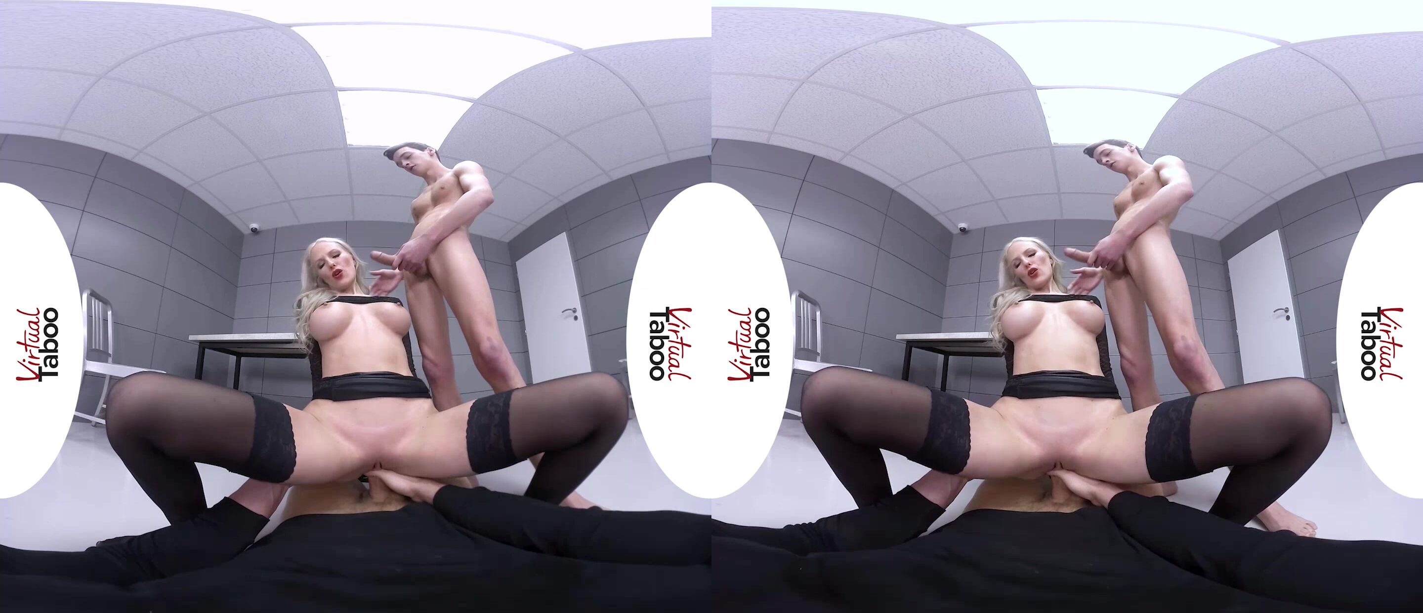 Después de haber sido arrestada por un mirón de su vecino bajo falsas acusaciones de tener una aventura con su hijo, la sexy MILF rubia Mavie tuvo que explicarse ante el oficial. En primer lugar, explicó que no tenía un hijo, sino un hijastro que es bastante joven e inexperto para ella. Le gustan los hombres mayores, experimentados y serios, lo que demostró al oficial que la estaba interrogando subiéndose a la mesa, sacando su polla dura y poniéndola entre sus tetas perfectamente redondas antes de dejar que se la metiera profundamente en su coño húmedo. Mientras estos dos follaban, los hijastros de la lujuriosa Mavie vinieron al rescate de su mamá solo para verla recibiendo una fuerte paliza en la mesa. Sorprendido, confundido y aterrorizado al principio, el hijastro de esta rubia madura superó rápidamente todas las emociones y se unió a la acción sacando su erección y haciendo que su madrastra se la chupara. Pronto, él estaba lamiendo el coño afeitado de su madre antes de que ella pasara a montar el miembro grande del oficial en el suelo mientras le hacía una mamada. Luego, el hijastro pudo golpear su coño húmedo por detrás mientras ella le daba servicio oral al eje del policía antes de que invirtieran los roles una vez más. Pero ninguno de los hombres pudo durar tanto y fue el impresionante hijastro de Mavie quien primero le roció su esperma pegajoso por toda la cara antes de que el policía hiciera lo mismo. Al final, el oficial a cargo cerró el caso porque las acusaciones eran claramente completamente falsas.