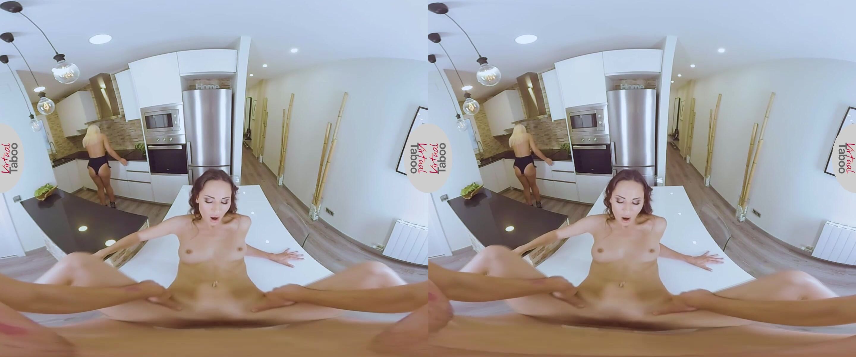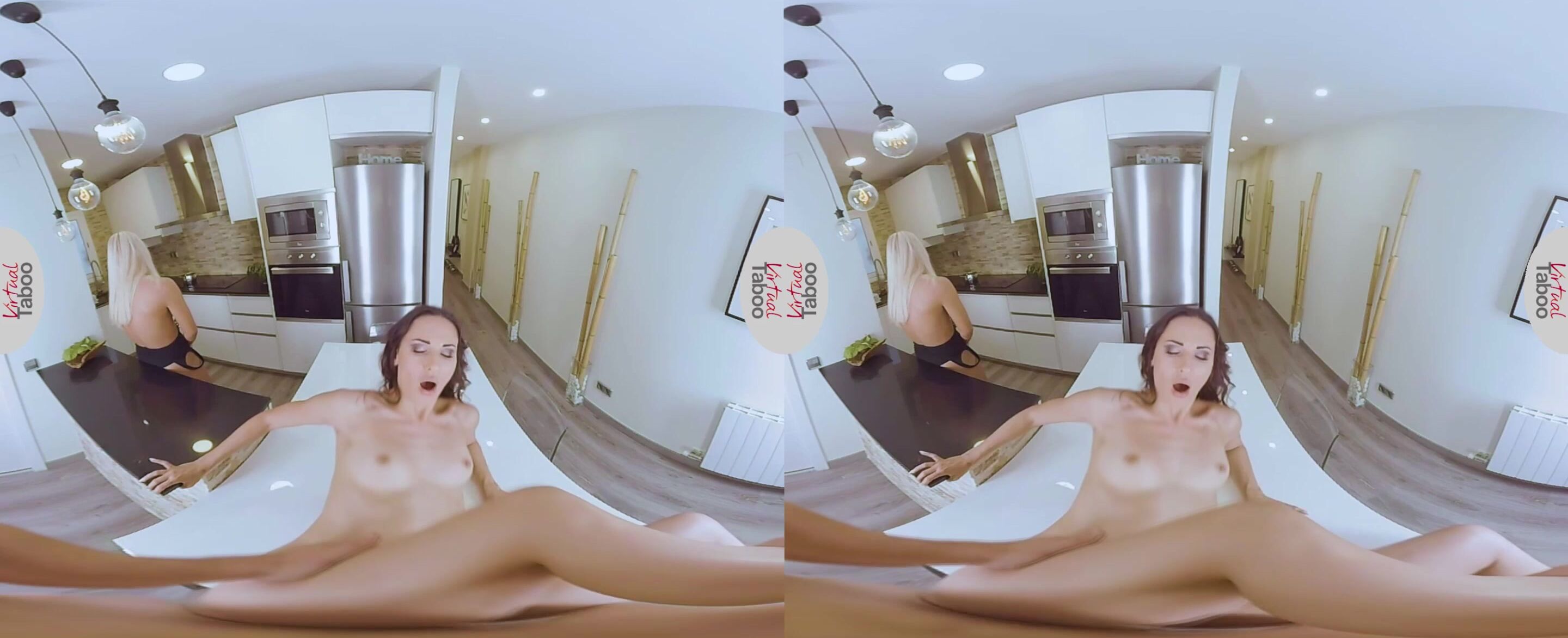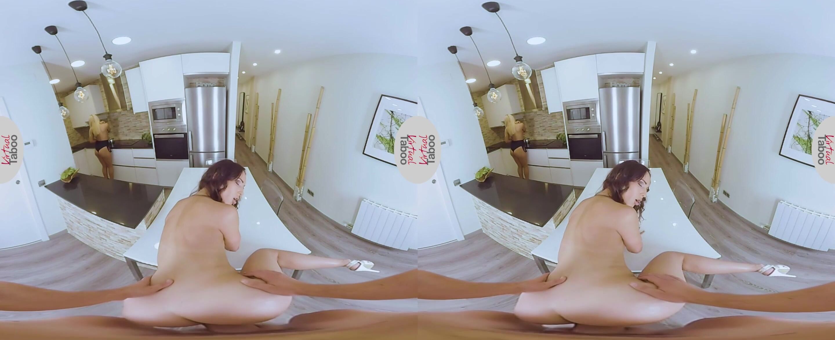 Mientras estabas discutiendo los planes para el almuerzo con tu encantadora hermanastra rubia Sofía, tu ardiente madrastra morena Lilu estaba al acecho en el fondo y esperando el momento adecuado para abalanzarse sobre tu enorme verga como una verdadera puma. Cuando la pequeña Sofía se levantó y comenzó a preparar el almuerzo, la cachonda Lilu inmediatamente fue a por tus pantalones y sacó tu dura polla para chuparla un rato. Levantándose y apoyándose en la mesa, esta despampanante madura te dejó meter tu enorme verga profundamente dentro de su húmedo coño y taladrarla mientras se aseguraba de que Sofía no se diera cuenta de nada. Pero, en el mismo momento en que tu esperma caliente golpea el coño bien afeitado de tu madrastra, Sofía termina de preparar la comida y se da la vuelta. El asombro en su rostro se convirtió lentamente en horror cuando se dio cuenta de lo que estaba sucediendo a sus espaldas.