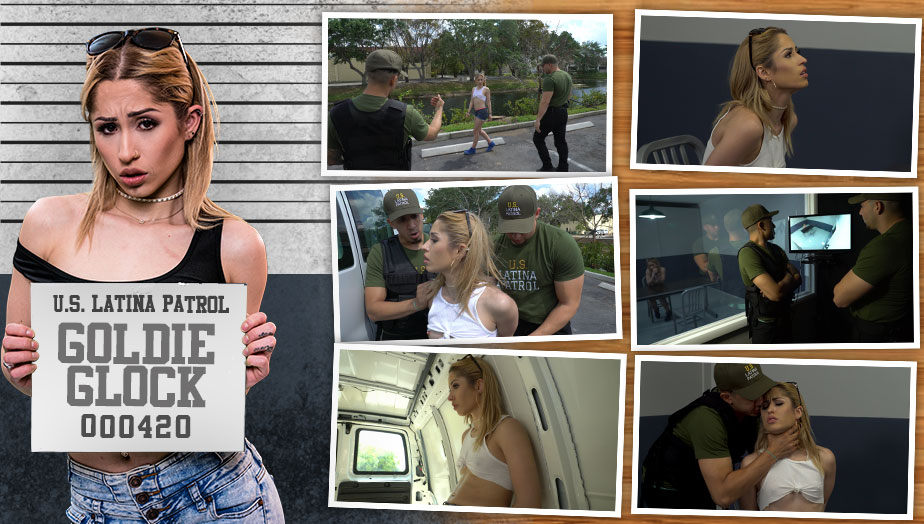 ¡Alto, pregunta, joder! Después de una vigilancia, los agentes de LP Bruno y Mitch ven a su objetivo, Goldie Glock, saliendo del trabajo y rápidamente se abalanzan sobre ella. La pequeña niña se alarma pero obedece mientras los agentes le dan un cacheo exhaustivo y humillante y le informan que la están arrestando por ser una extranjera ilegal criminal. Más tarde, durante su interrogatorio, el agente Bruno le ofrece un trato especial: haz lo que yo diga y podrás quedarte. Desesperada y con miedo de ser deportada, acepta y se convierte en un pequeño juguete latino para que el agente la golpee, la abofetee, la estrangule y la domine sexualmente hasta que la bombardee con una corrida facial.