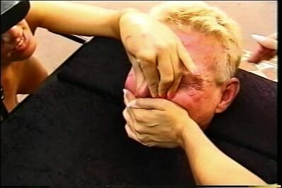Video retro con chicas increíbles asfixiando a un tipo atrapado en una silla.