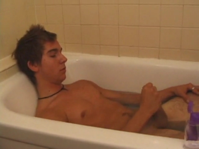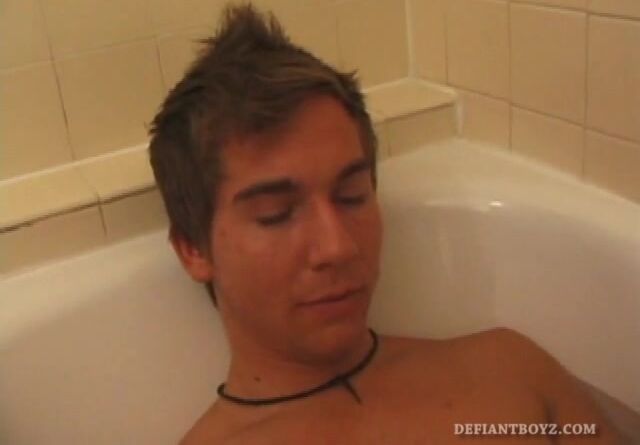 Brock está descansando en la bañera, leyendo una revista y acariciándose la polla. Tras masturbarse un par de veces, no tarda en correrse en la cara.