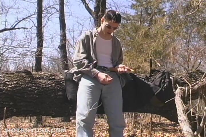 Cuando Derrick Windsor, de 18 años, estaba de excursión por el bosque, sintió ganas de masturbarse. El joven miró a su alrededor y se dio cuenta de que estaba solo, así que se apoyó en un árbol caído y se bajó los pantalones lo justo para masturbarse su creciente pene. Esa verga creció hasta unos impresionantes 23 centímetros, antes de que empezara a masturbarse con determinación. Cuando estaba listo para correrse, Derrick se dio la vuelta y se corrió sobre el árbol en el que estaba apoyado.