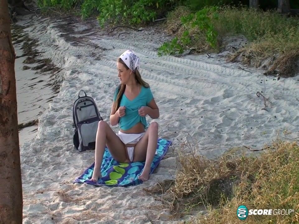 Nuestro camarógrafo y su asistente recorren la playa buscando pollitos cuando se encuentran con Ashlyn Lee tomando el sol en la arena. Pero no está tomando el sol. Está jugando consigo misma. Nuestro camarógrafo se esconde tras un árbol. ¿Sabe Ashlyn que está ahí? ¿O finge no saberlo? Tendrás que ver el video para descubrirlo. ¿A qué esperas?