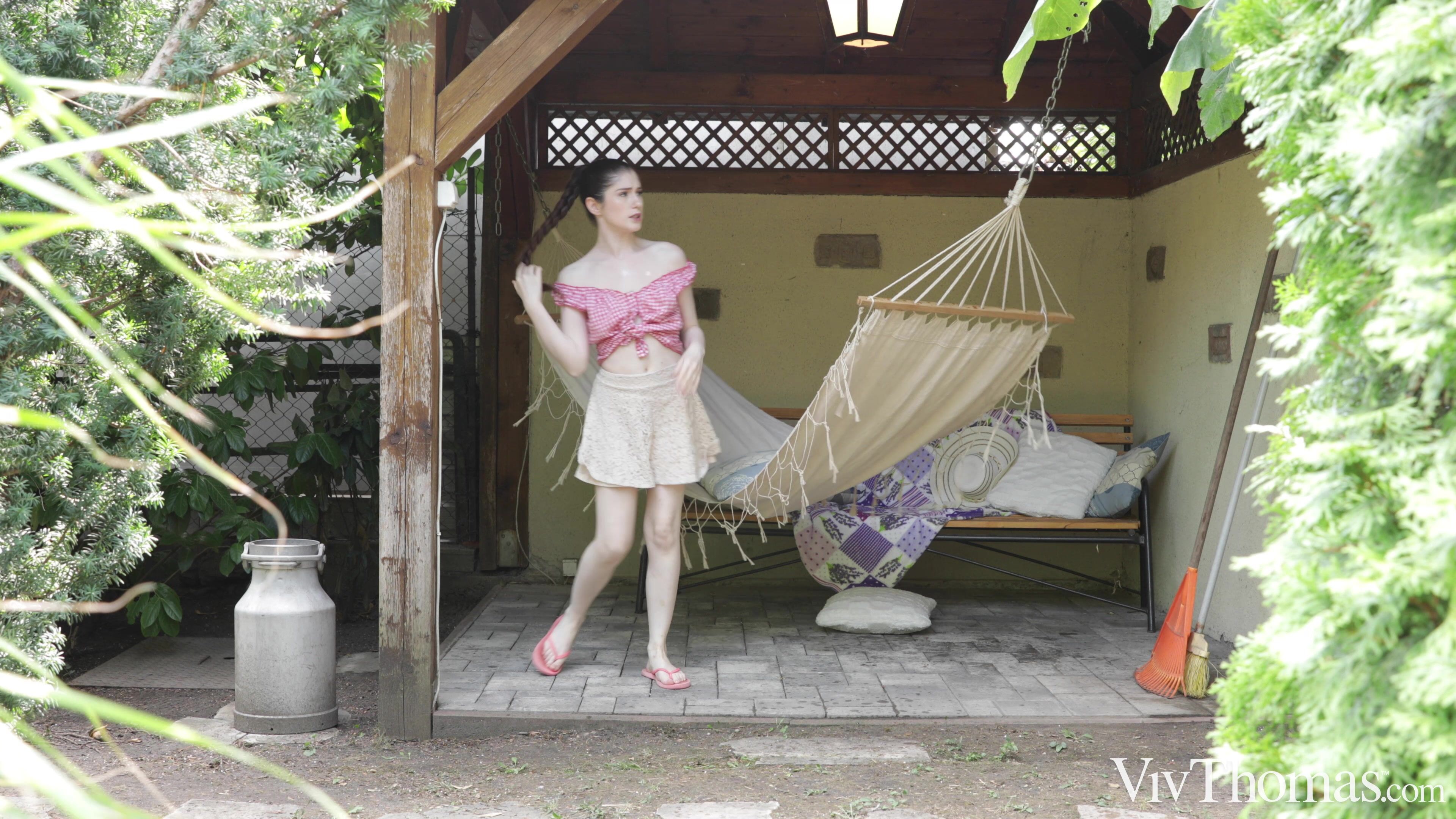 La linda morena Pearl lee en una hamaca en el patio trasero, mientras comienza la película lésbica erótica de Sandra Shine, "Playful Touch". Se asusta al ver a su vecina Stacy Cruz, quien está regando sus plantas cuando rocía agua sobre la cerca, empapándola. Pearl se acerca para quejarse, pero pronto queda encantada con la dulce disculpa de la voluptuosa belleza y no puede resistirse a actuar según su atracción mutua. Se besan con creciente pasión, explorando con manos y labios mientras Stacy presiona sus hermosos y grandes pechos contra los firmes de Pearl. Arrodillándose, comienza a lamer el coño afeitado de Pearl, haciéndola jadear y gemir de excitación, la penetra con los dedos fervientemente, luego la empuja hacia la hamaca con los muslos pálidos como la porcelana y la devora hasta un orgasmo intenso. Ahora Pearl desnuda a Stacy y acaricia su peludo vello púbico mientras le lame el coño con avidez. Stacy se recuesta en la hamaca y Pearl concentra toda su destreza oral en darle a su guapísima vecina un orgasmo intenso.