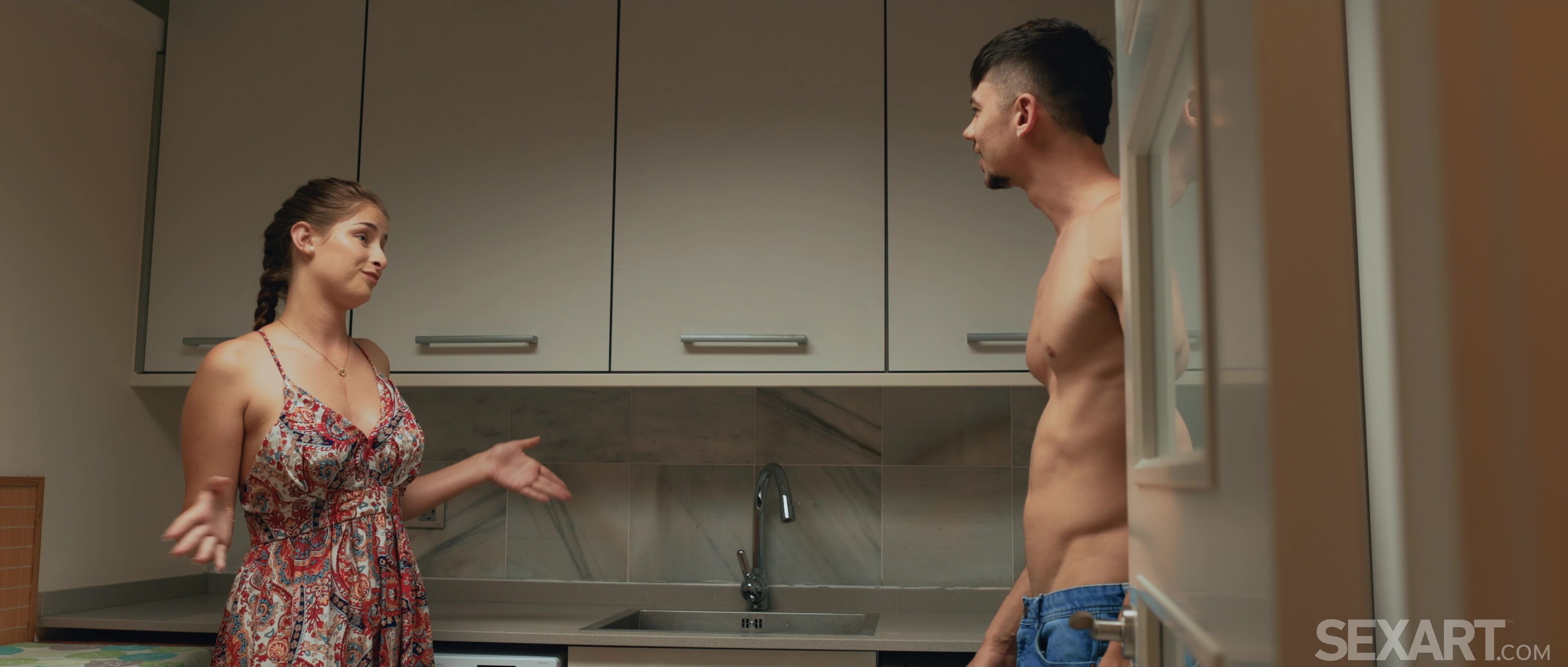 La guapísima Ambar Lapiedra discute con su novio en la lavandería al comienzo de la película erótica "Resist" de Andrej Lupin. La curvilínea intenta lavar el vestido que lleva puesto; sus hermosos y grandes pechos rebotan, distrayendo a Tommy Cabrio de la pelea. Envolviéndola en un abrazo juguetón, Tommy la provoca diciéndole que está demasiado ocupado para divertirse. Ella supera su resistencia con una caricia ardiente y él la besa apasionadamente, arrojando sus bragas a la lavadora con una sonrisa pícara. Ahora, los ansiosos amantes dedican toda su atención a compartir un intenso placer mutuo con una energía voraz.