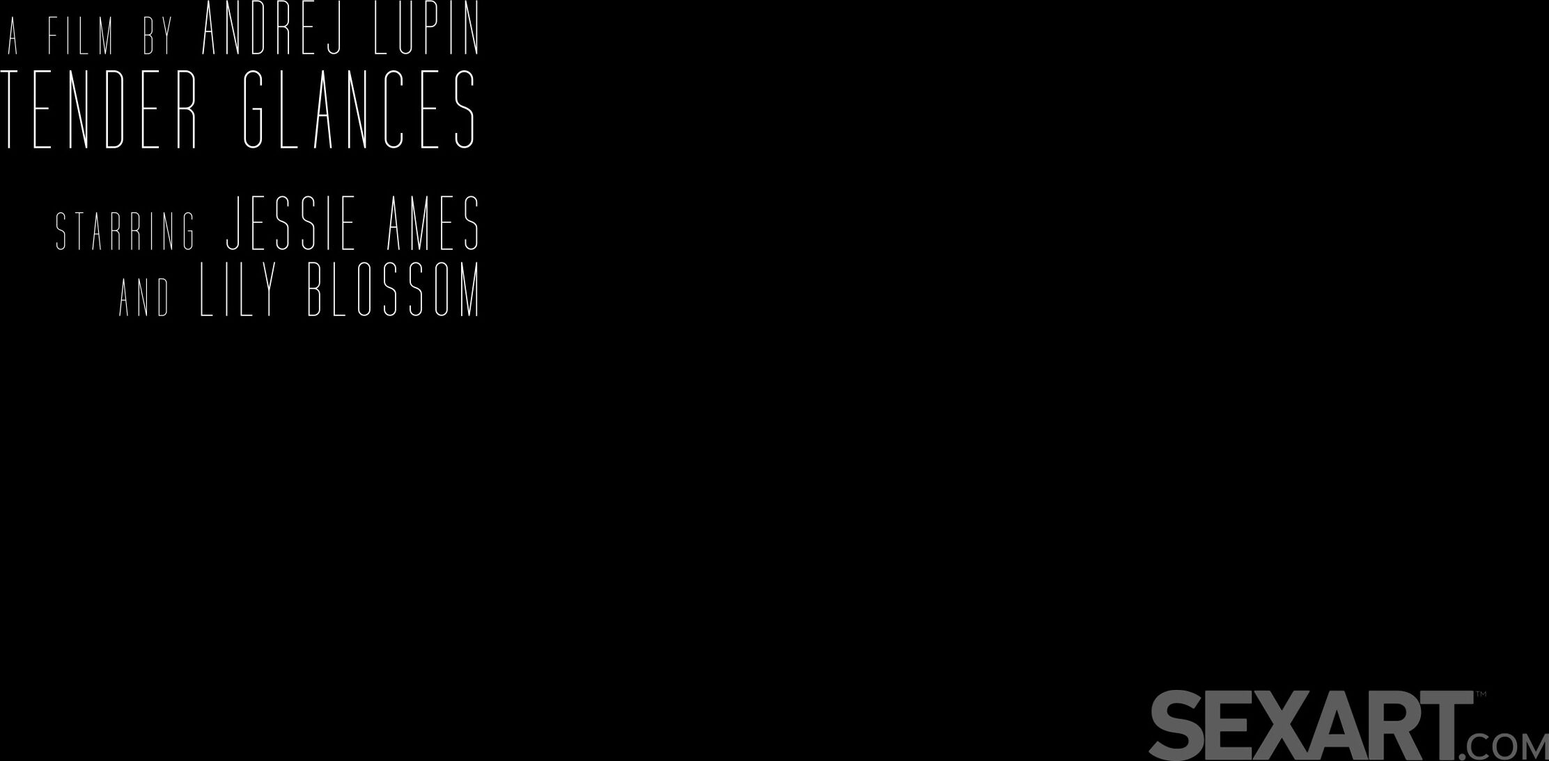 Las hermosas rubias Jessie Ames y Lily Blossom mantienen un contacto visual apasionado mientras se arrodillan una frente a la otra en la cama, liberando la tensión sexual antes de comenzar a besarse. Al comenzar la película lésbica erótica de Andrej Lupin, "Miradas tiernas", las apasionadas amantes ejercen su magia con miradas y caricias seductoras, cada momento más intenso que el anterior. Suaves jadeos y gemidos, susurros juguetones y risitas aumentan su excitación mientras manos y labios exploran. Pronto están desnudas y ansiosas por expresar su intenso deseo mutuo de la manera más dulce y dichosa imaginable.