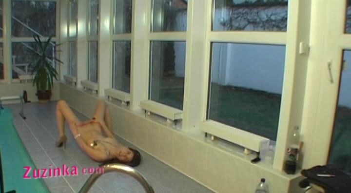 La traviesa checa Zuzinka muestra su cuerpo perfecto y delgado durante una divertida sesión de fotos junto a una piscina.
